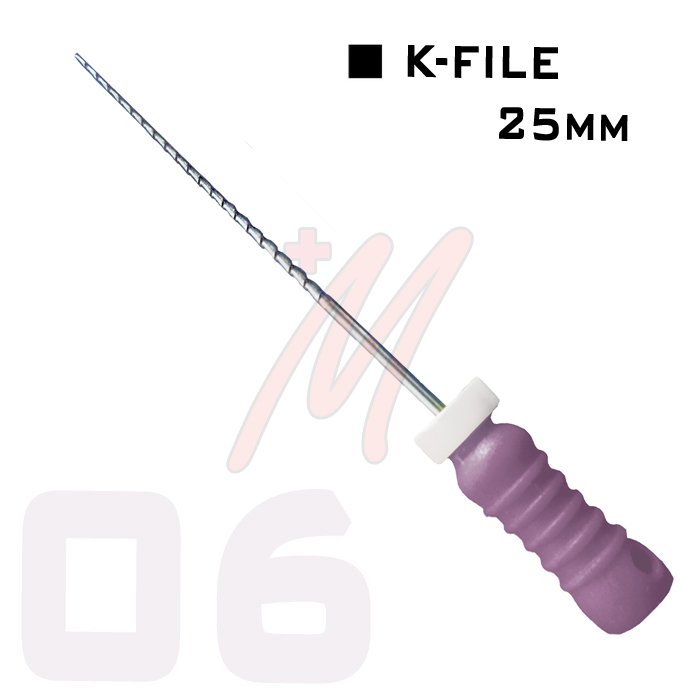 Strumenti canalari in Acciaio, tipo lima hedstrom, sezione a virgola, spire ad elica passo abbastanza stretto, prodotti con una speciale lega di acciaio che ne garantisce una resistenza ed una flessibilità totale. Manico ergonomico per un’eccellente presa, stopper in gomma, colorazione ISO.